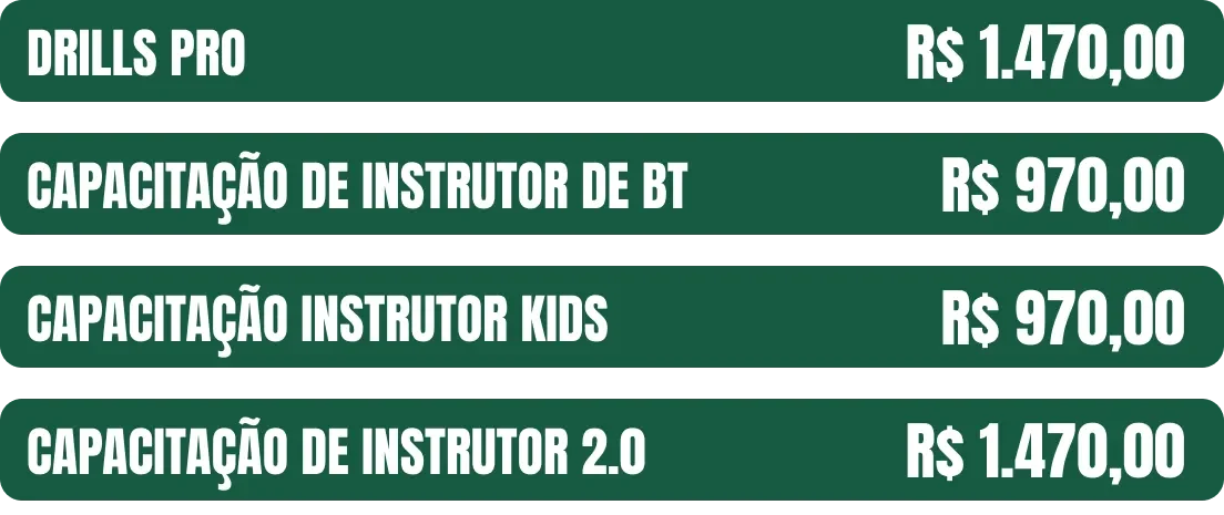 Tenha acesso a técnicas exclusivas e mais de 100 drills completos para aplicar nas suas aulas e lotar a sua agenda. E veja como uma atleta profissional treina, corrige e trabalha a evolução de seus alunos